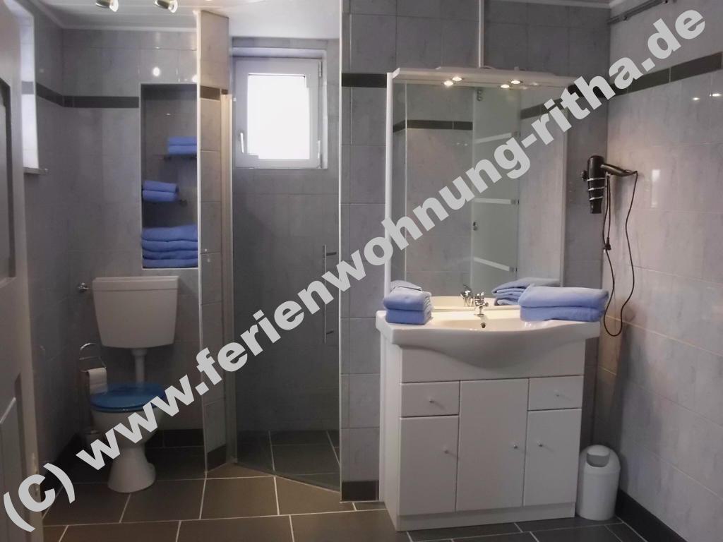 Föhn, Bade- und Handtücher, sowie diverse Ablagemöglichkeiten.